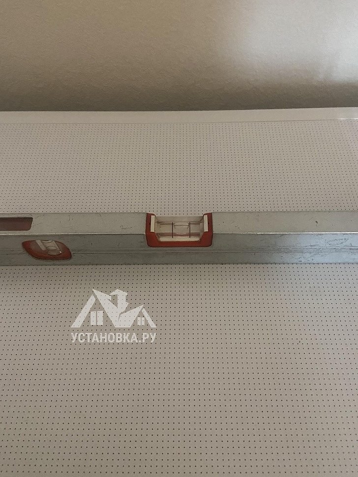 - Монтаж 1-го поворотного элемента потолочного профиля ПВХ.