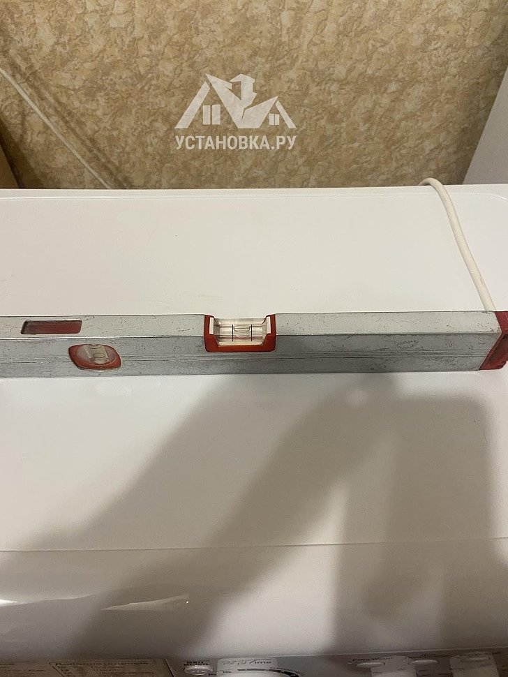 - Снятие транспортировочных креплений у стиральной машины, выравнивание по уровню.
