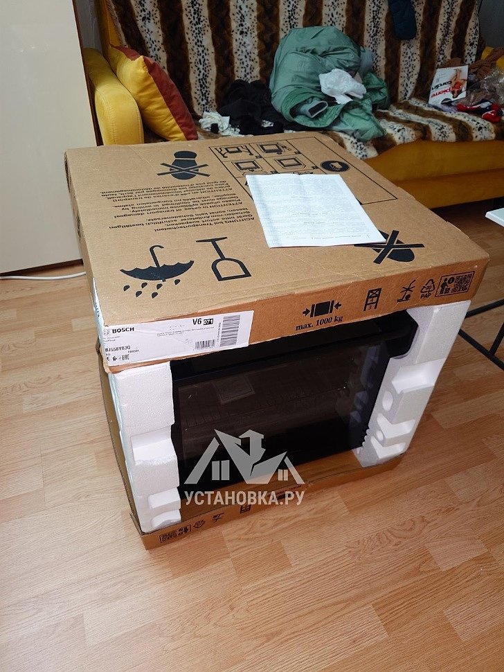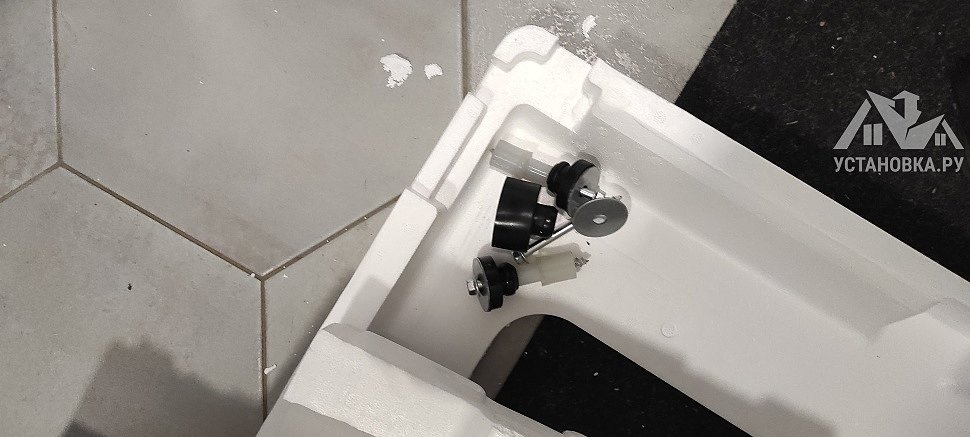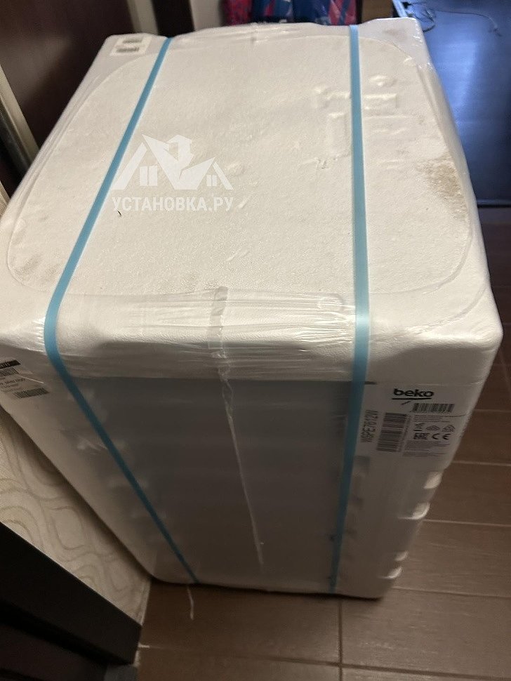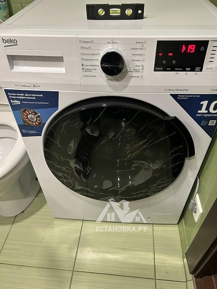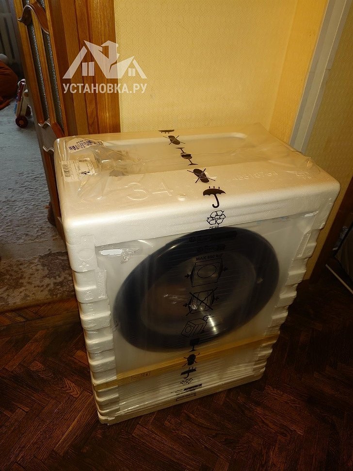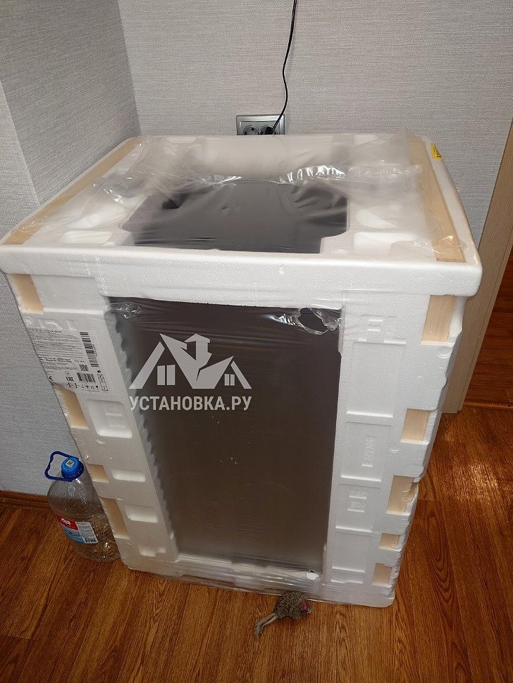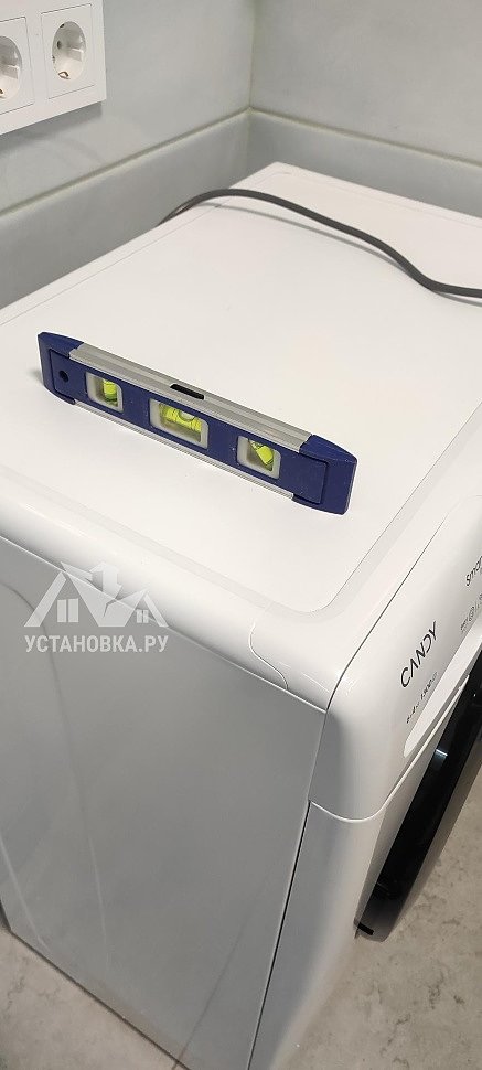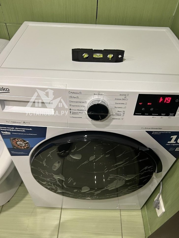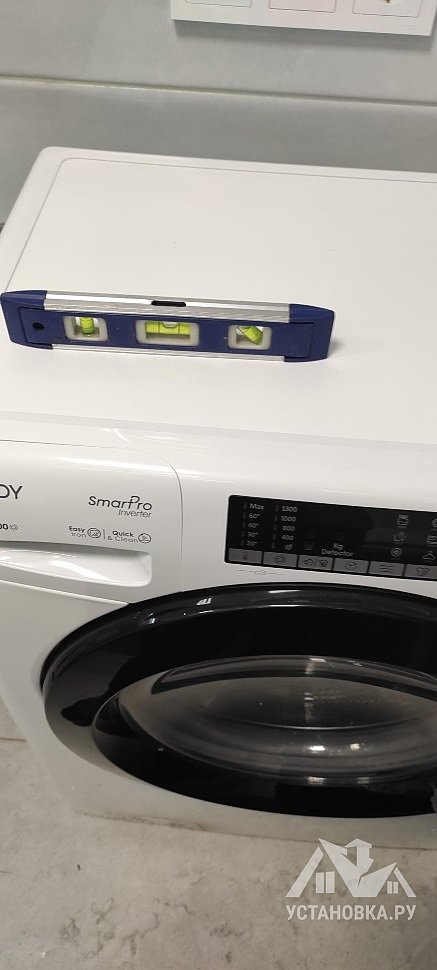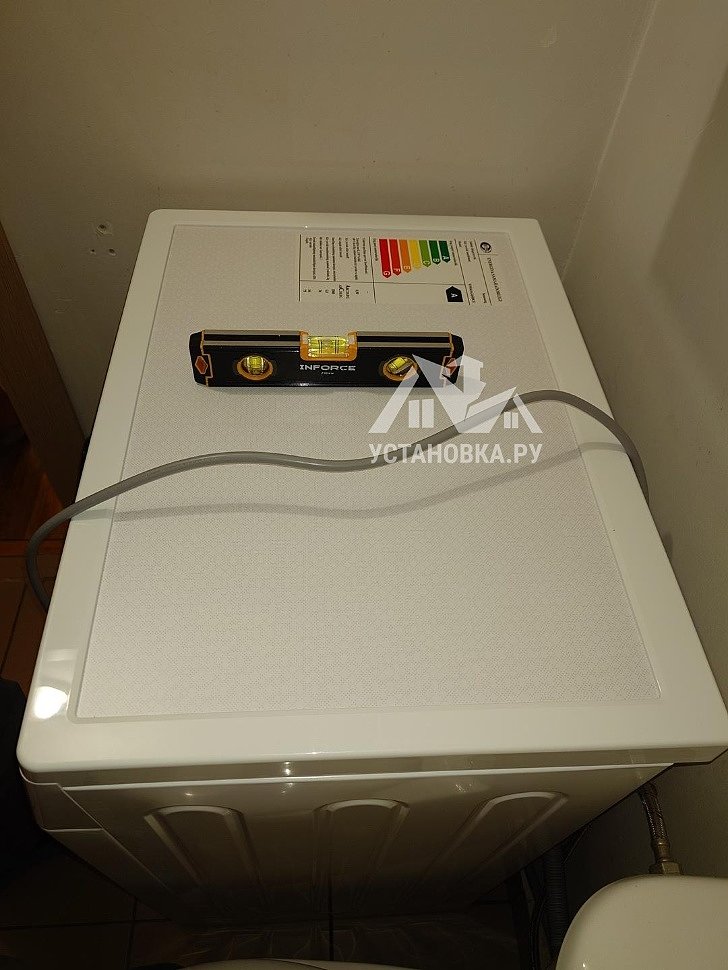 - Снятие транспортировочных креплений у стиральной машины, выравнивание по уровню.