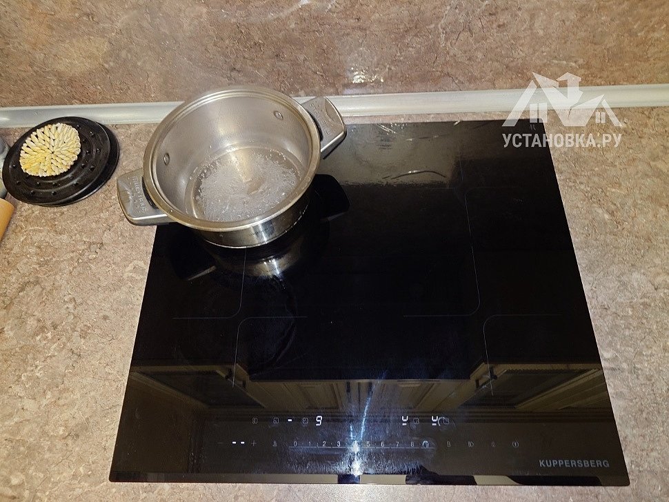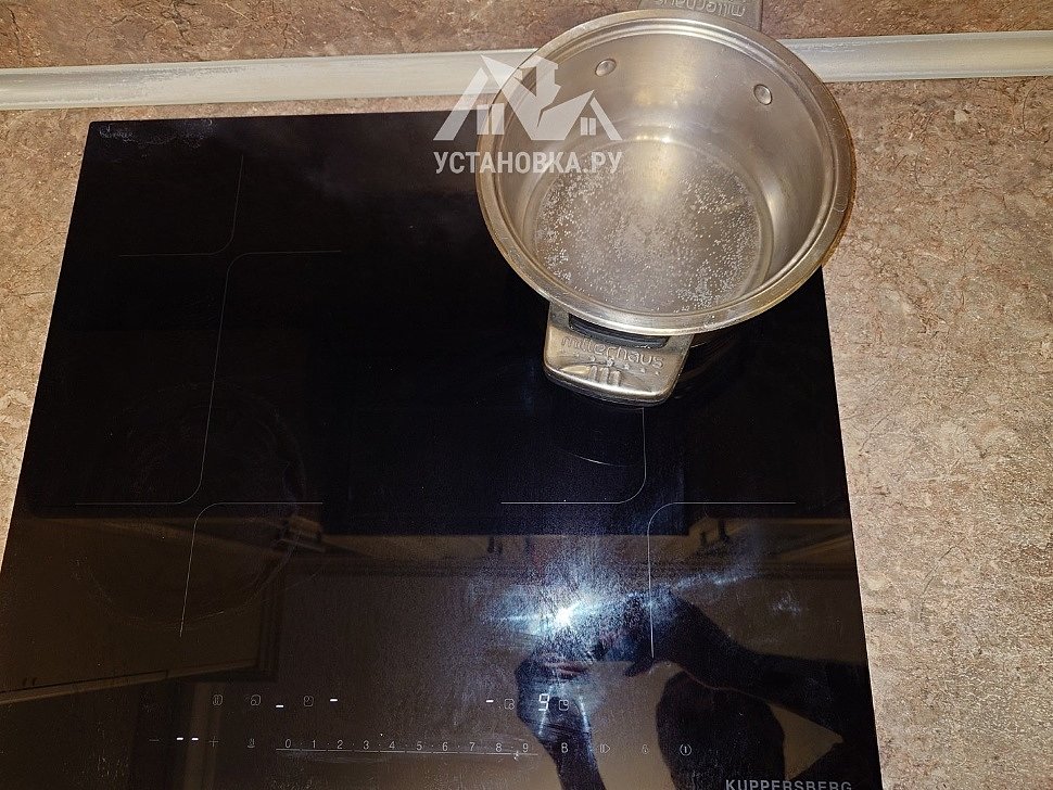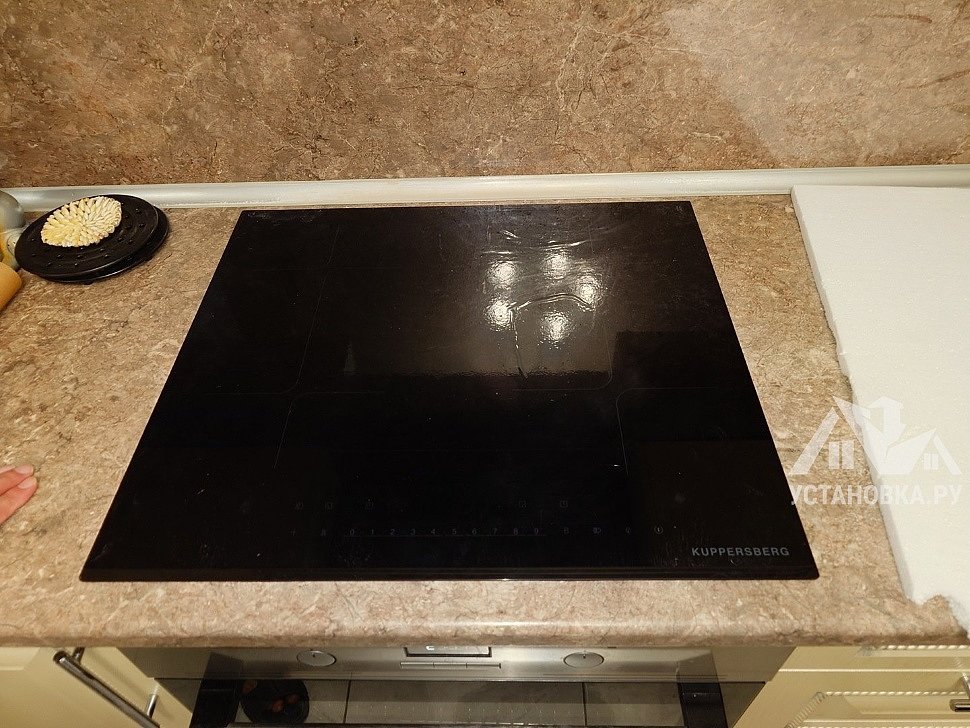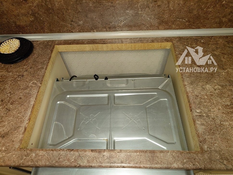 - Монтаж варочной панели в готовый проём ( У Вас должен быть готов вырез в столешнице под варочную панель)