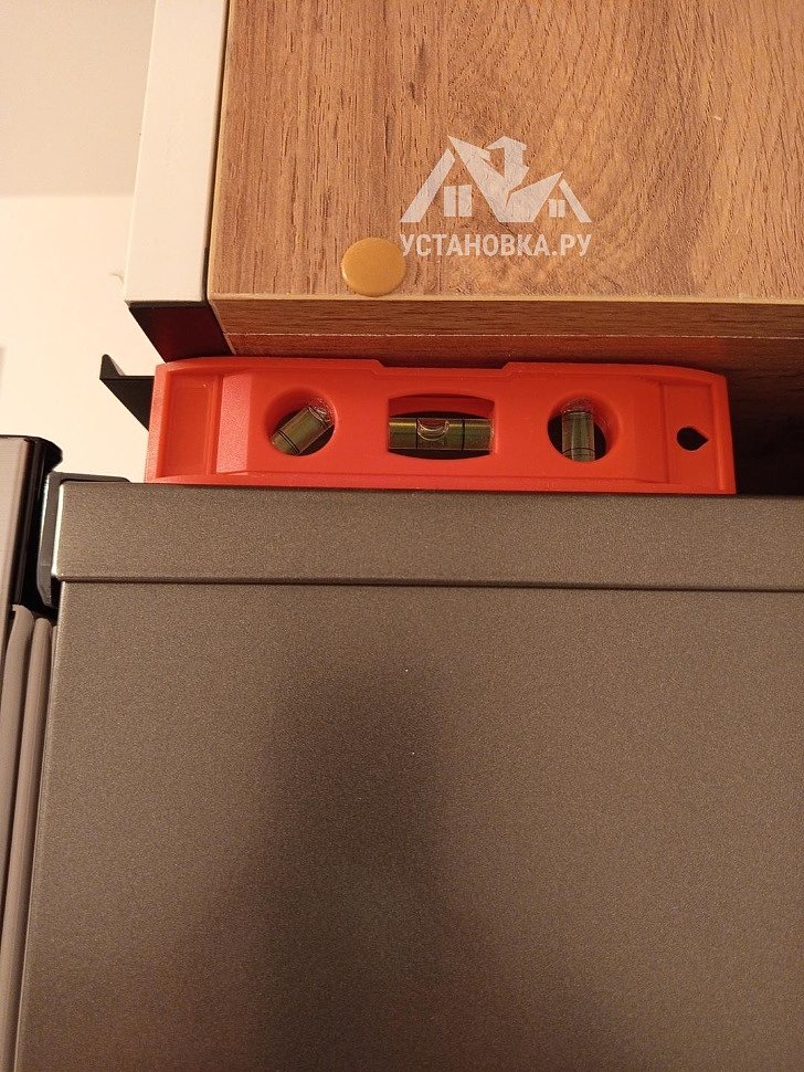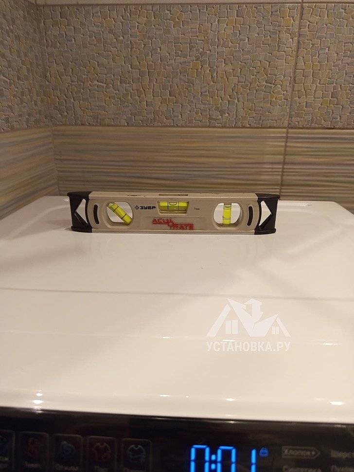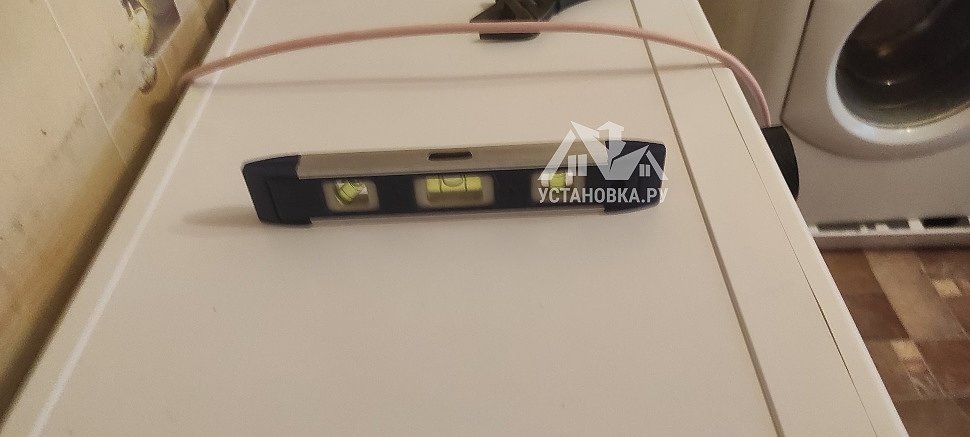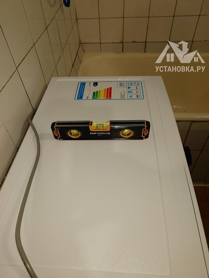 - Снятие транспортировочных креплений у стиральной машины, выравнивание по уровню.