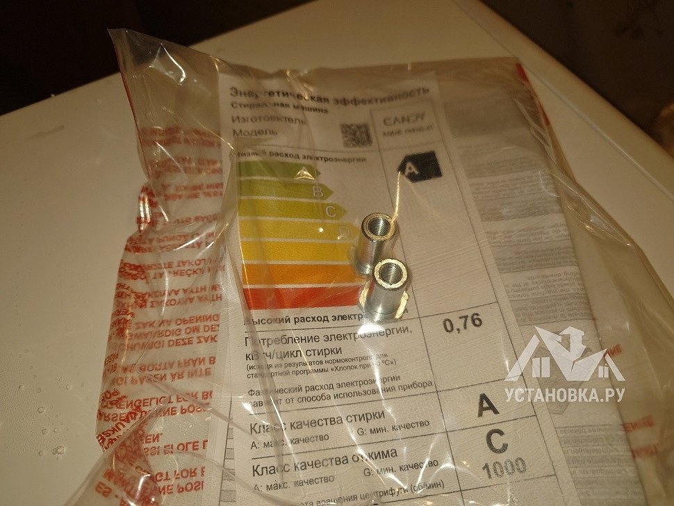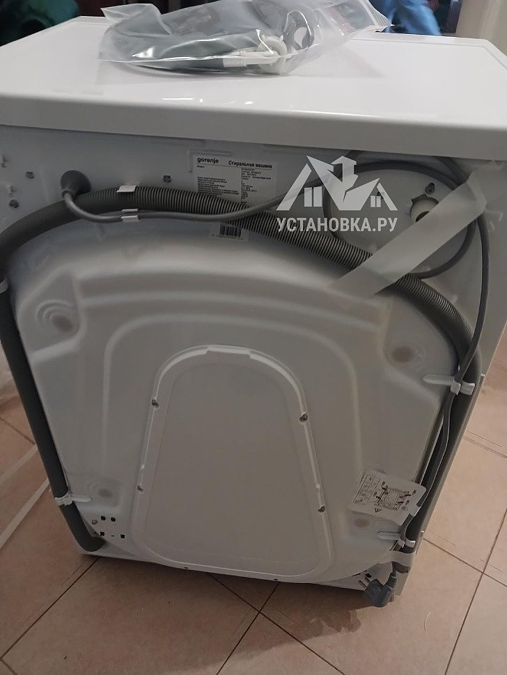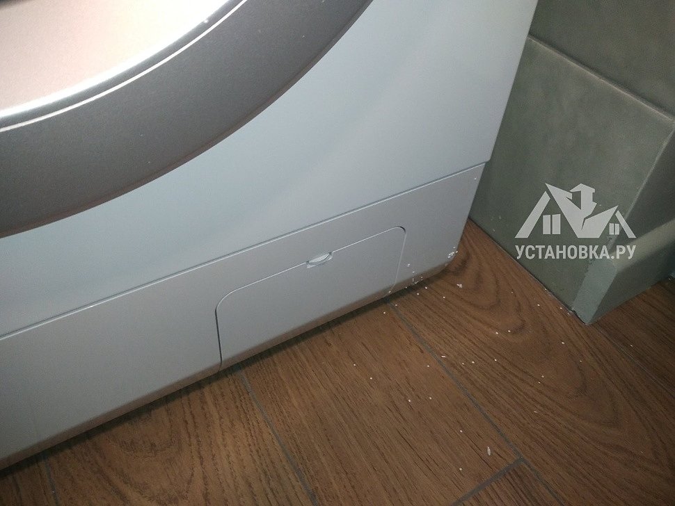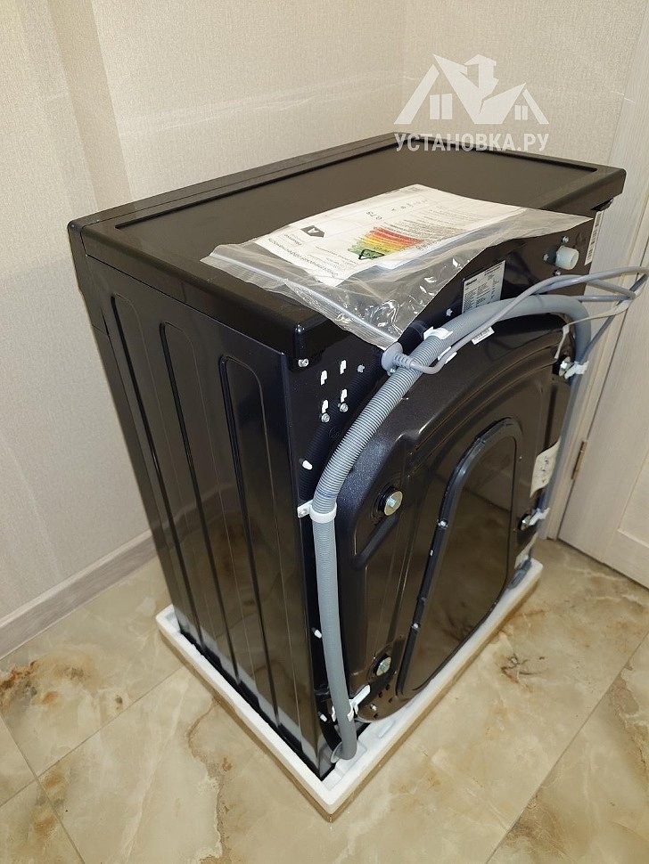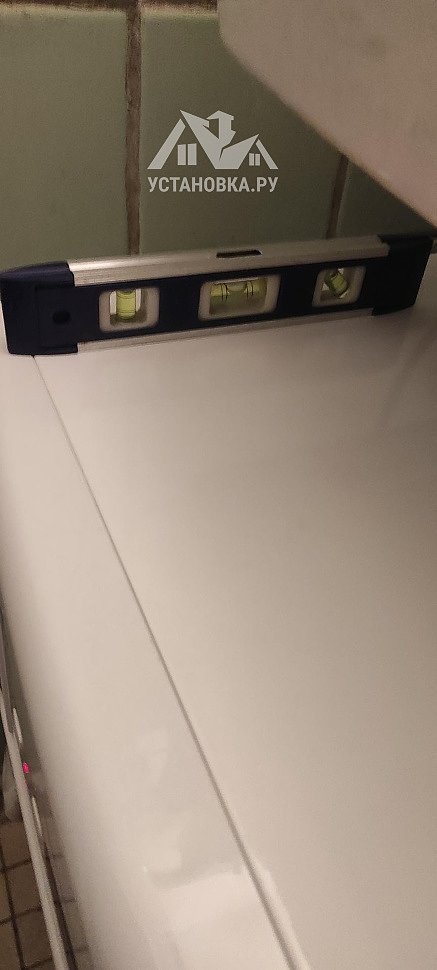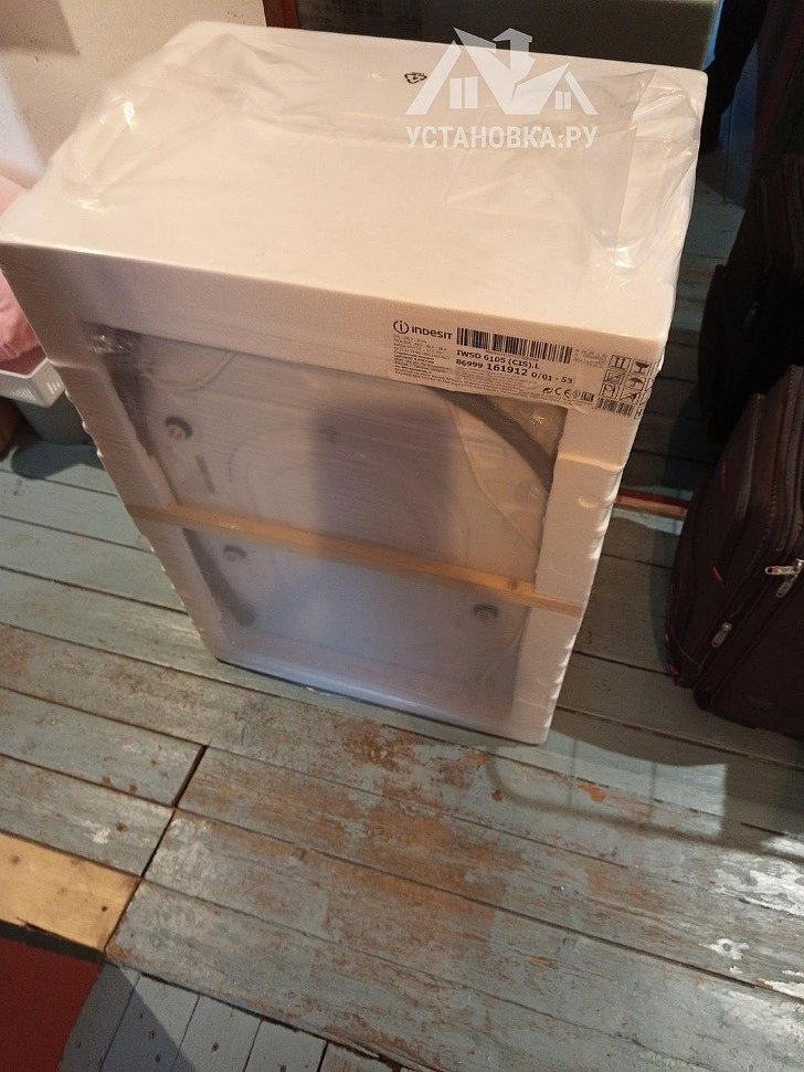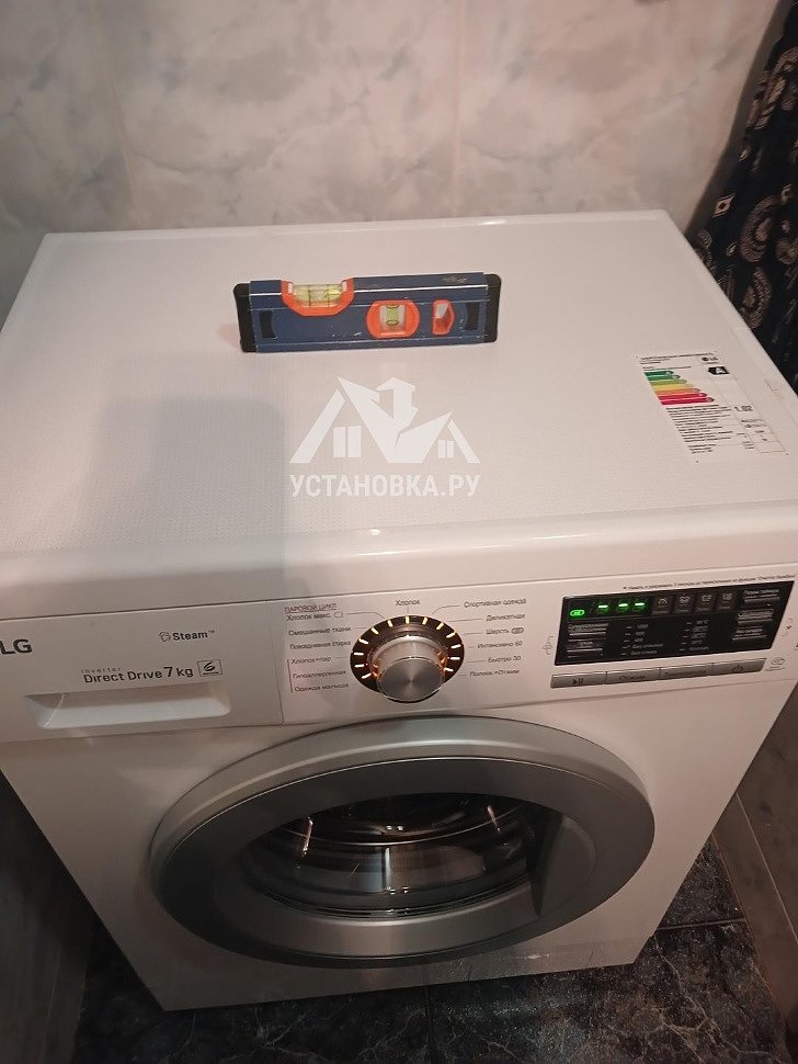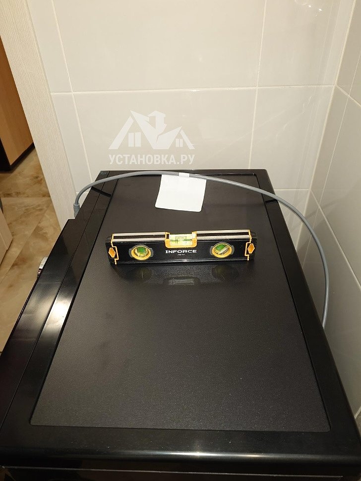 - Снятие транспортировочных креплений у стиральной машины, выравнивание по уровню.