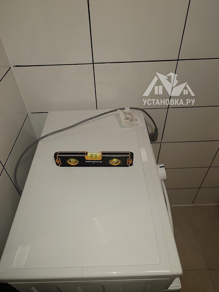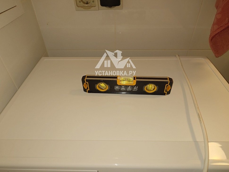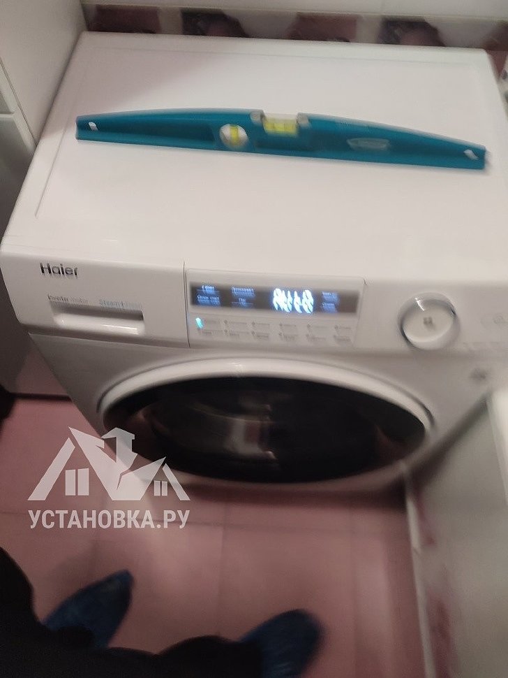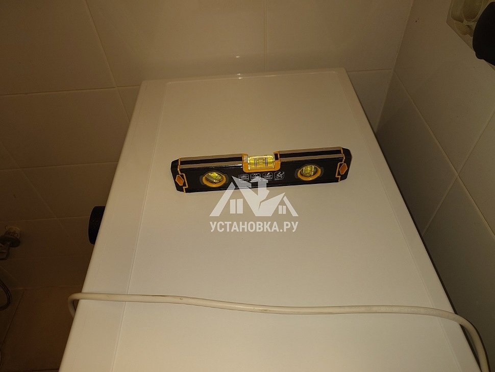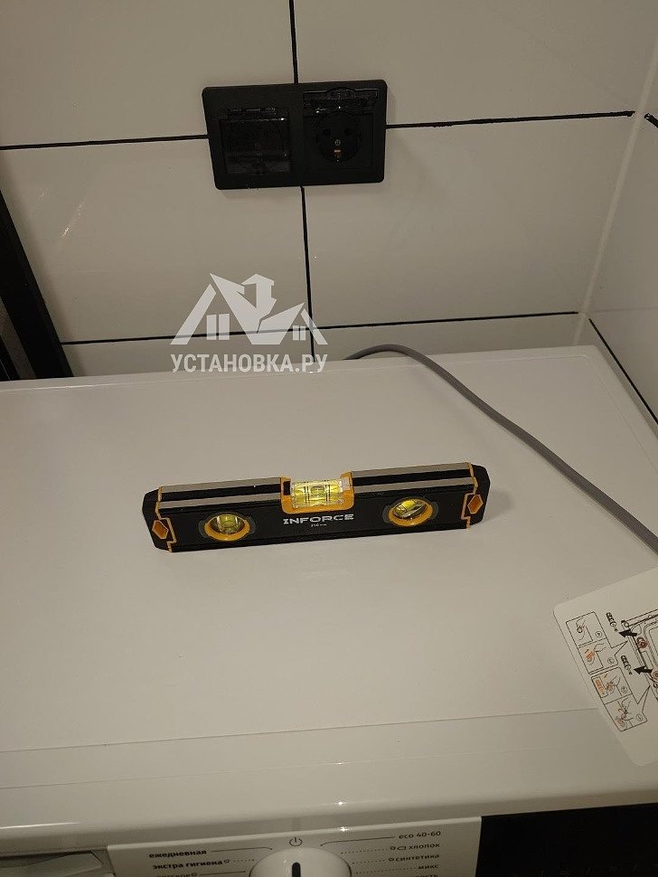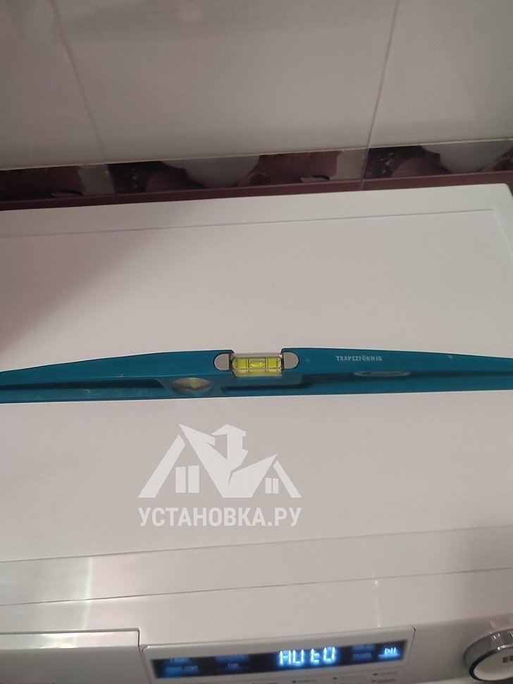 - Снятие транспортировочных креплений у стиральной машины, выравнивание по уровню.