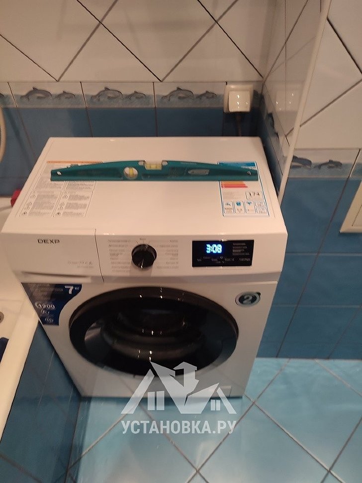 - Снятие транспортировочных креплений у стиральной машины, выравнивание по уровню.