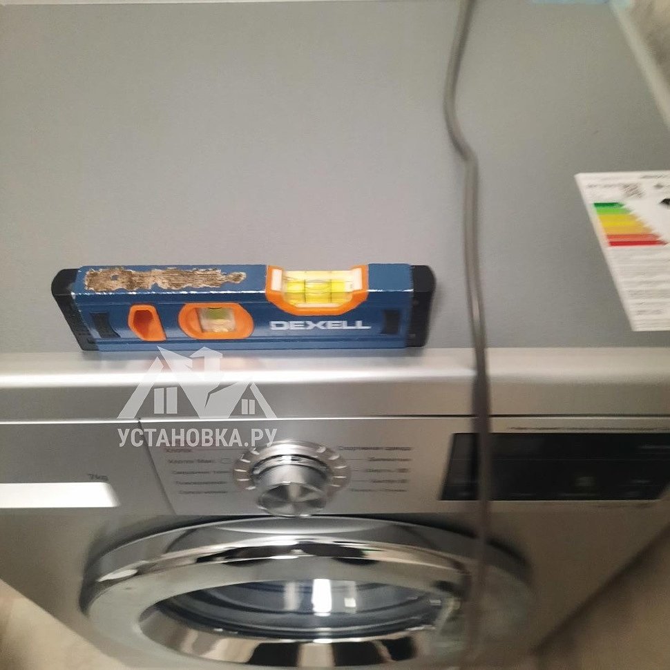- Снятие транспортировочных креплений у стиральной машины, выравнивание по уровню.