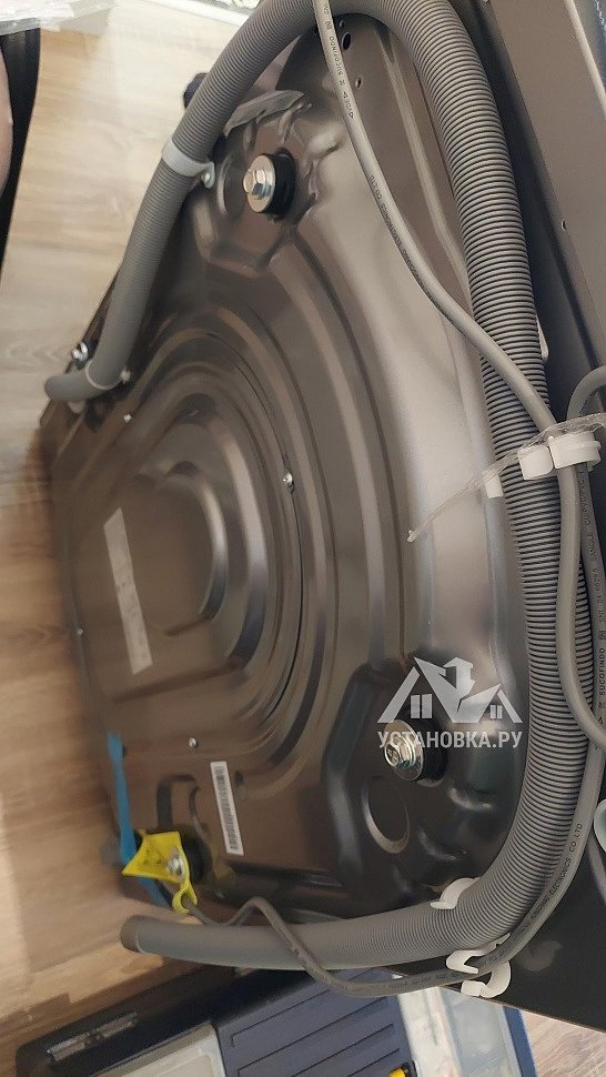 - Снятие транспортировочных креплений у стиральной машины, выравнивание по уровню.
