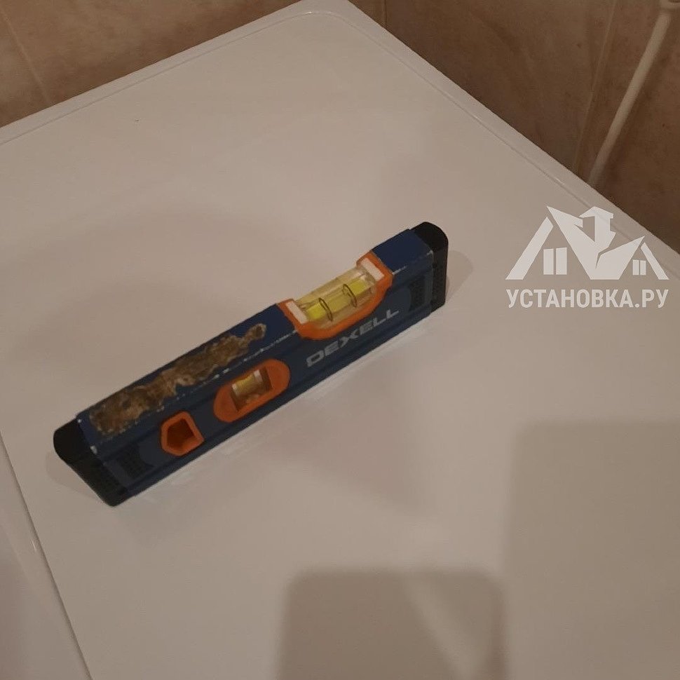 - Снятие транспортировочных креплений у стиральной машины, выравнивание по уровню.