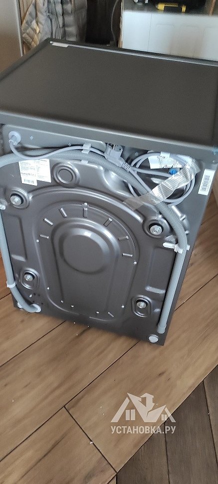 - Снятие транспортировочных креплений у стиральной машины, выравнивание по уровню.