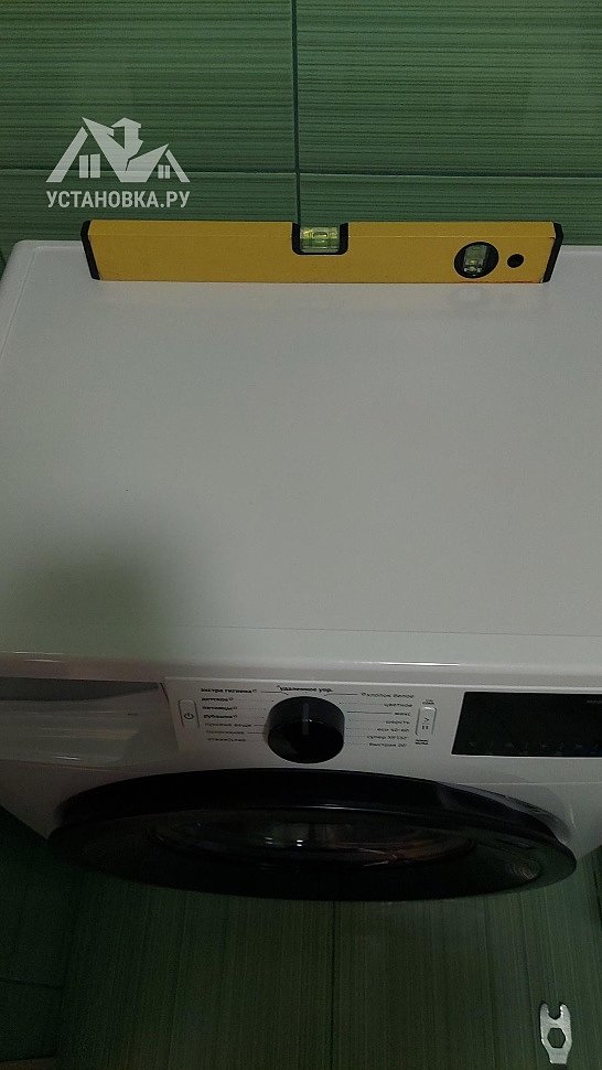 - Снятие транспортировочных креплений у стиральной машины, выравнивание по уровню.