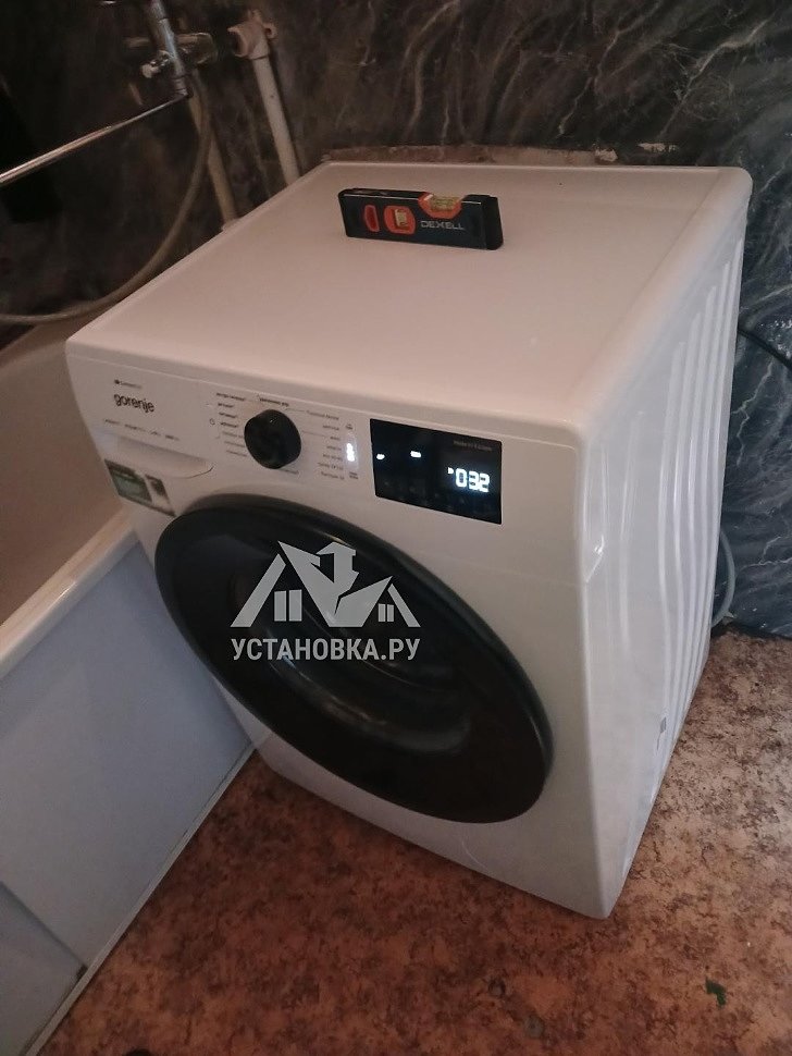 - Снятие транспортировочных креплений у стиральной машины, выравнивание по уровню.