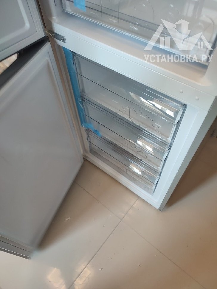 - Демонтаж либо установка нижней полки под холодильник. Для выставления холодильника по высоте.