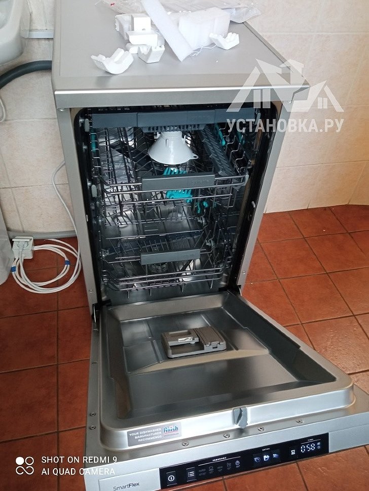 установить компактную посудомоечную машину Ginzzu на готовые коммуникации