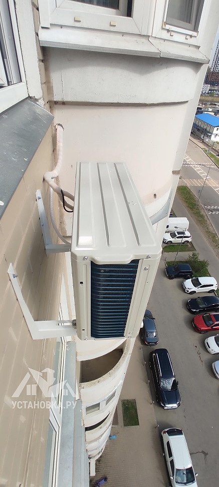 Монтаж наружного блока под окно (для первых этажей на доступную высоту без