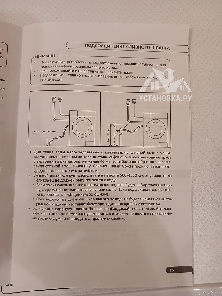 - Проверка прибора на работоспособность. (запус стиральной машины, проверка слива и отжима, на коротких циклах работы)