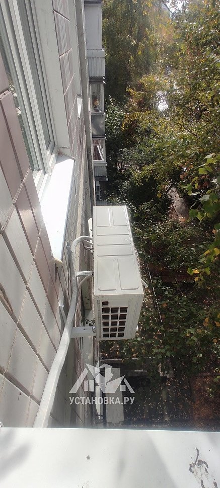 - Монтаж наружного блока под окно;