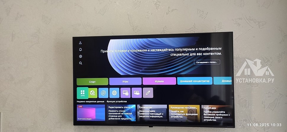Установка телевизора диагональю до 55"шт. 3500.00 p.В данную работу входит: