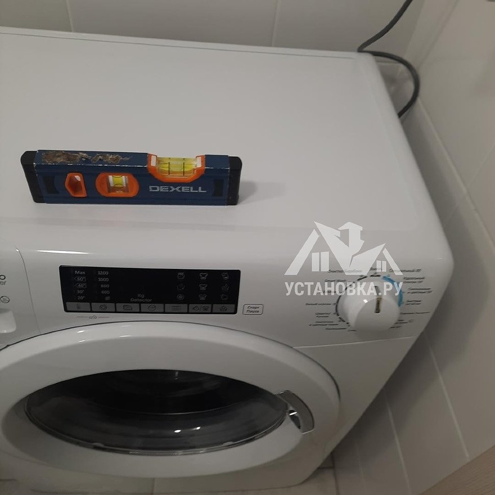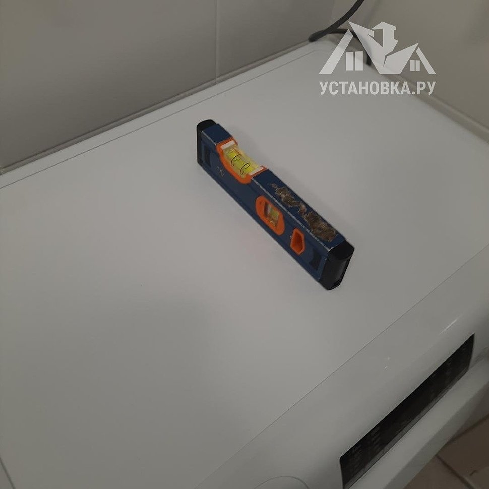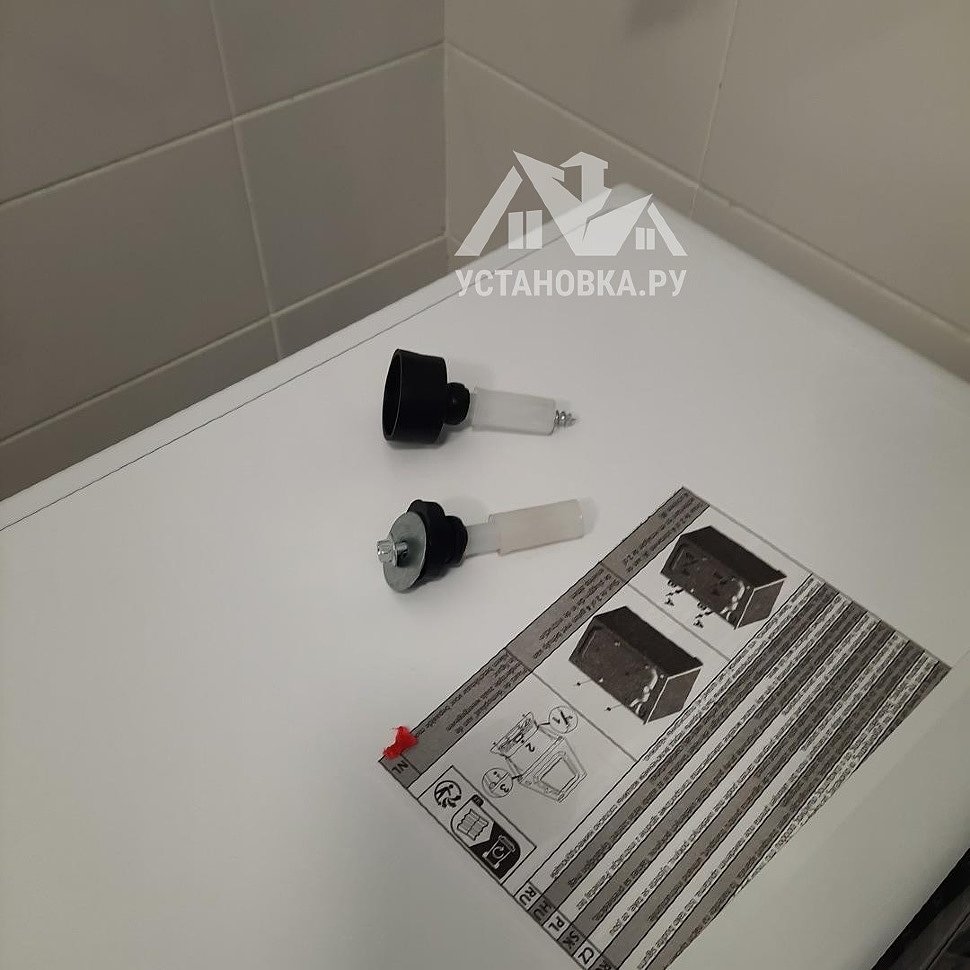 - Снятие транспортировочных креплений у стиральной машины, выравнивание по уровню.
