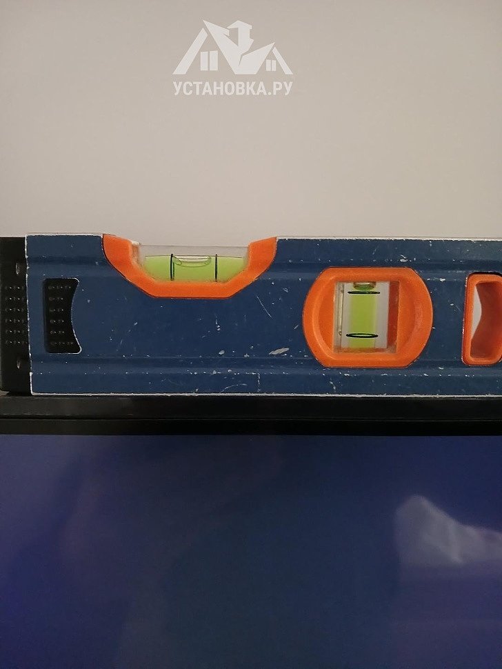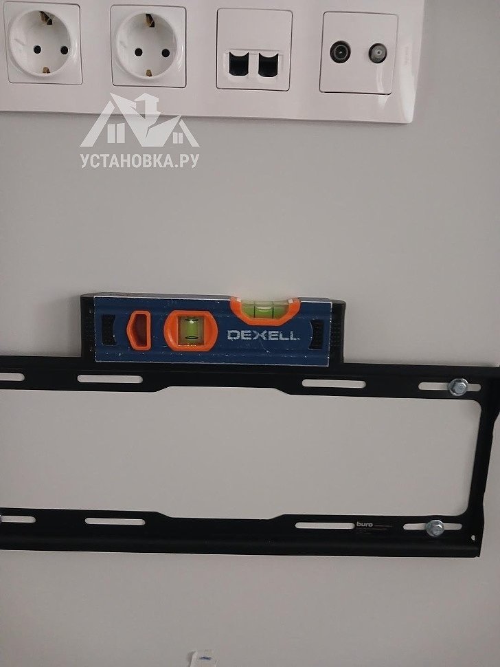 - Установка кронштейна на стену по уровню,