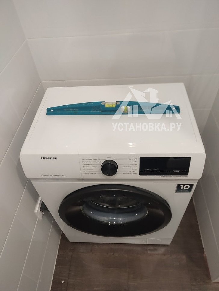 - Снятие транспортировочных креплений у стиральной машины, выравнивание по уровню.
