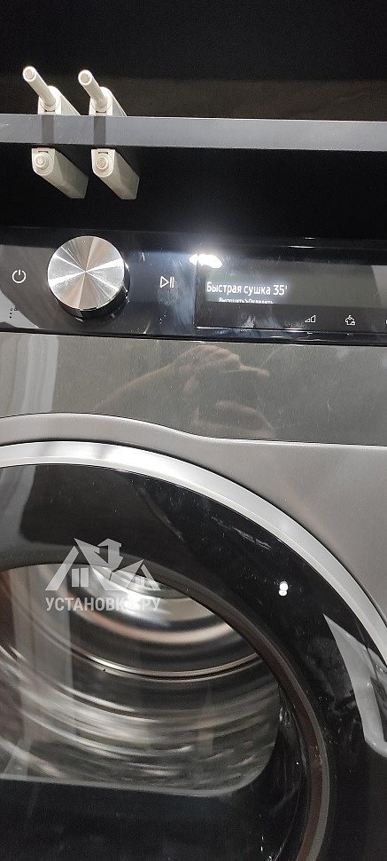 Примечание: Сушильная машина по размерам выглядит как стиралка, её ставят на стиральную машину сверху, из коммуникаций для неё нужна розетка и слив как у стиральной машины, если не делать слив, то в сушильной машине предусмотрен лоток, который позволяет выливать воду без организации слива.