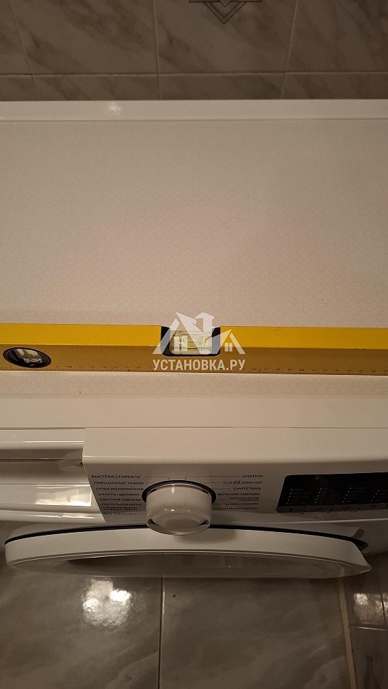 - Снятие транспортировочных креплений у стиральной машины, выравнивание по уровню.
