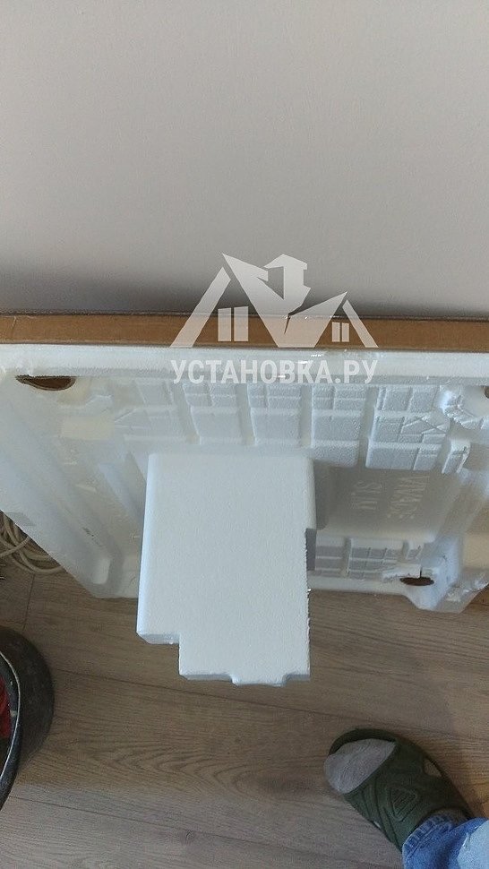 - Снятие транспортировочных креплений у стиральной машины, выравнивание по уровню.