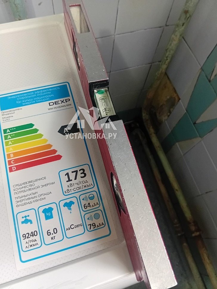 - Снятие транспортировочных креплений у стиральной машины, выравнивание по уровню.