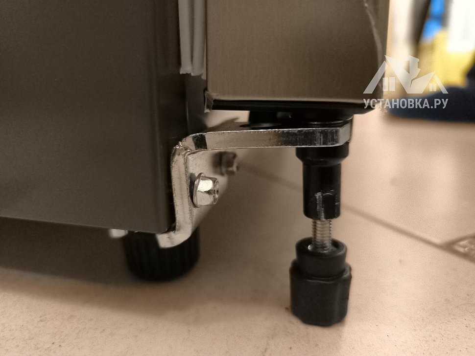 - Демонтаж либо установка нижней полки под холодильник. Для выставления холодильника по высоте.