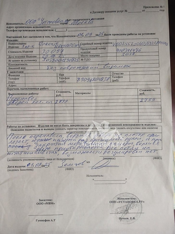 Перевес дверей на холодильнике "сайд бай сайд"шт. 3000.00 p.В данную работу входит: