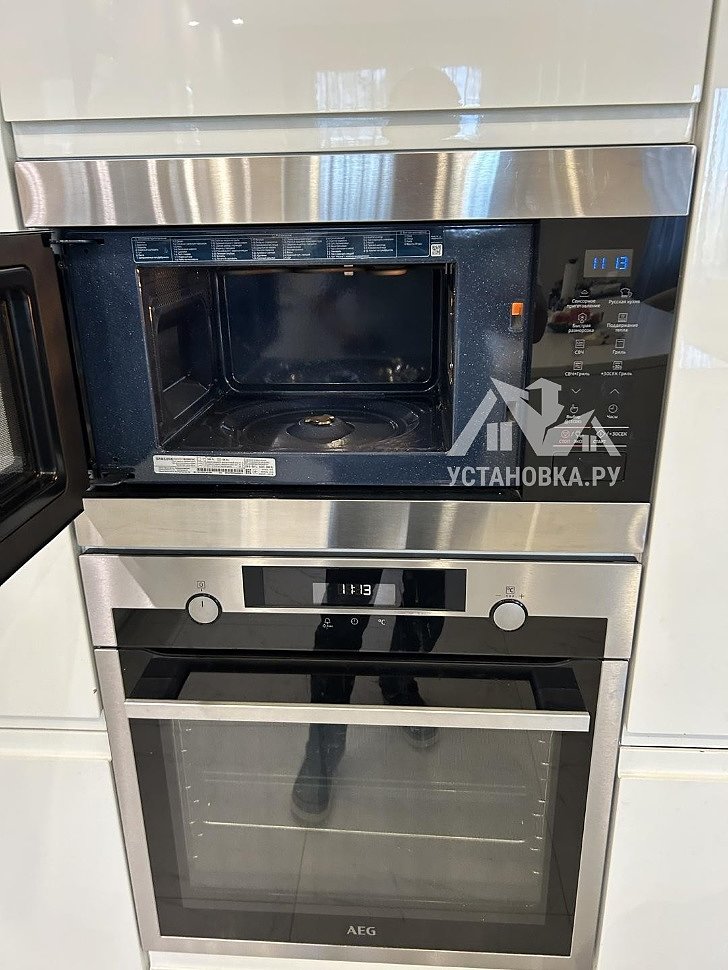 - Установка духового шкафа в подготовленную мебельную нишу.