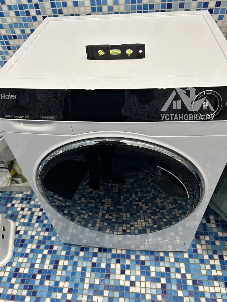 - Снятие транспортировочных креплений у стиральной машины, выравнивание по уровню.