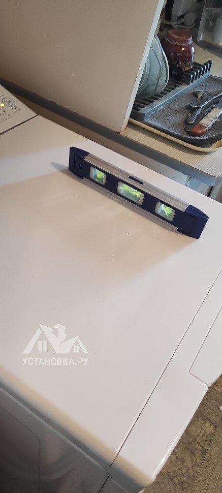 - Снятие транспортировочных креплений у стиральной машины, выравнивание по уровню.