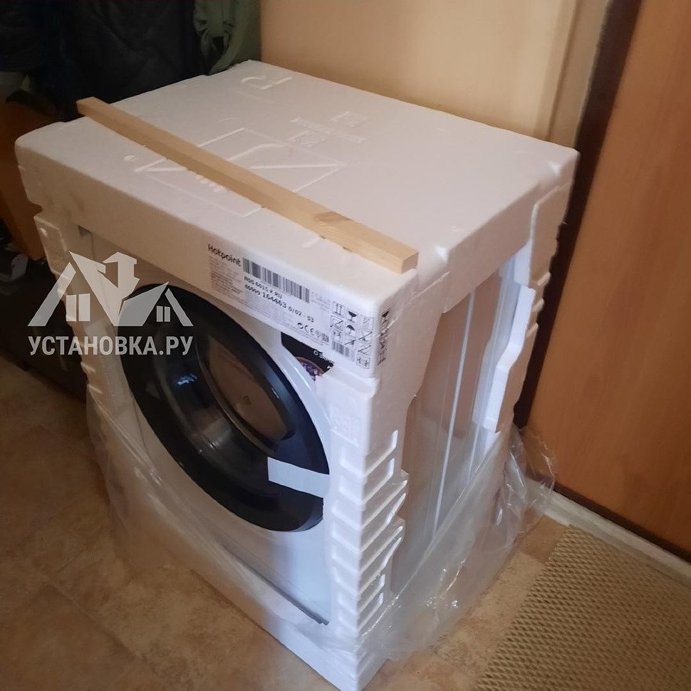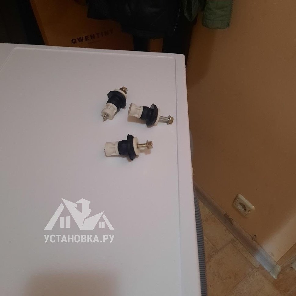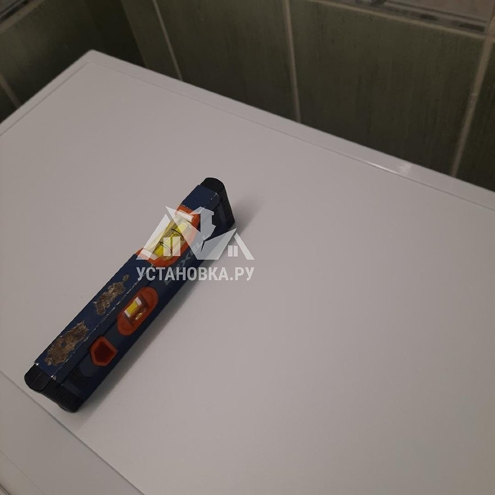 - Снятие транспортировочных креплений у стиральной машины, выравнивание по уровню.