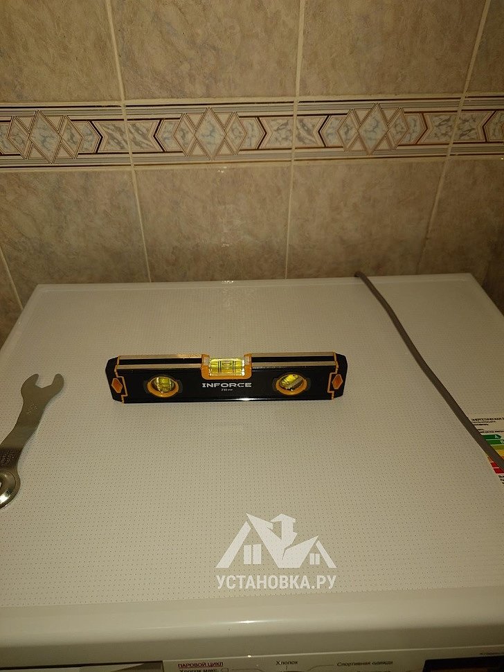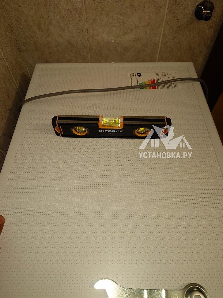 - Снятие транспортировочных креплений у стиральной машины, выравнивание по уровню.