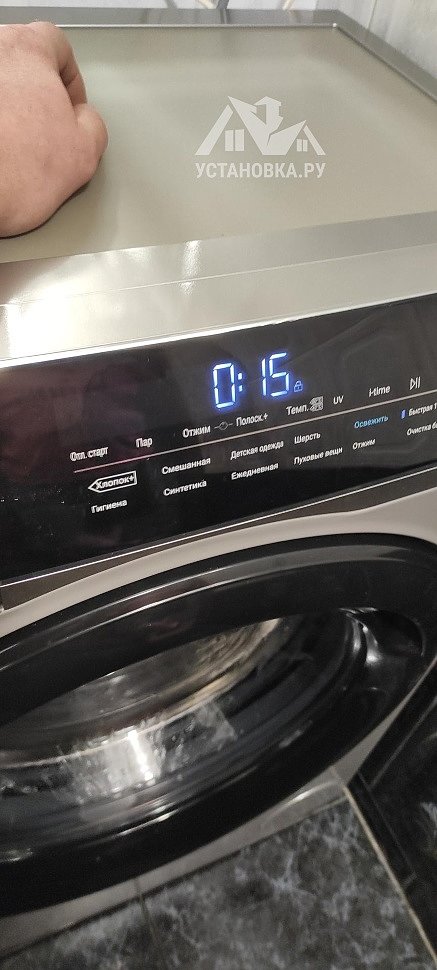 - Разметка и установка ручки и навес фасада на корпус стиральной машины