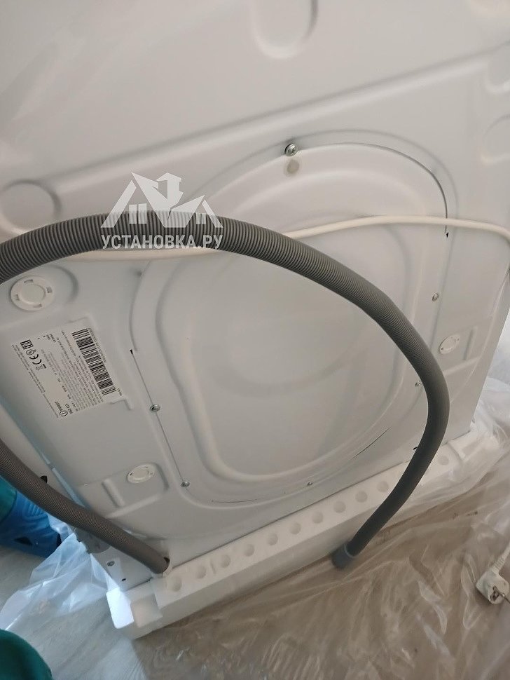 - Снятие транспортировочных креплений у стиральной машины, выравнивание по уровню.