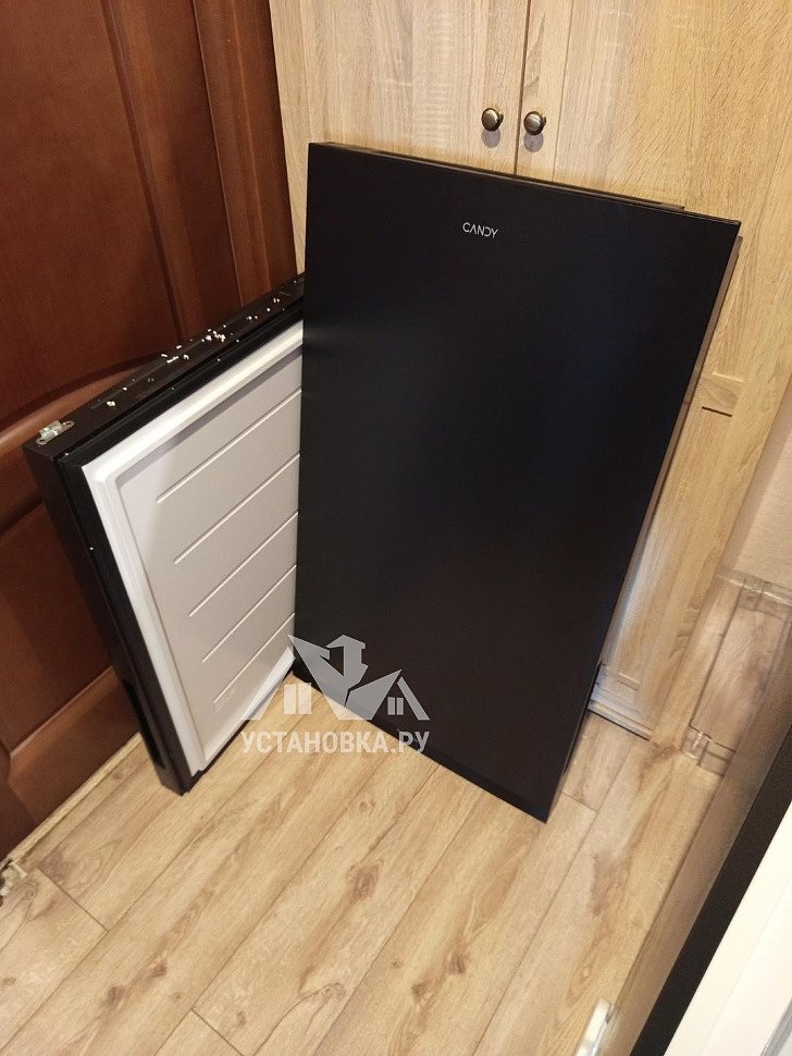 - Демонтаж дверей встроенного холодильника.