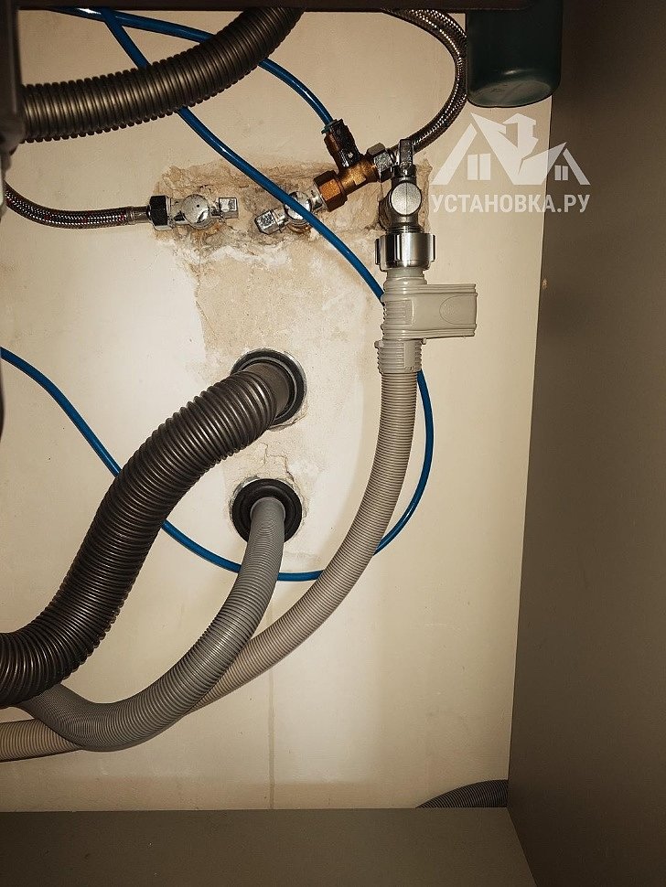 - Подключение посудомоечной машины соло к существующим коммуникациям.