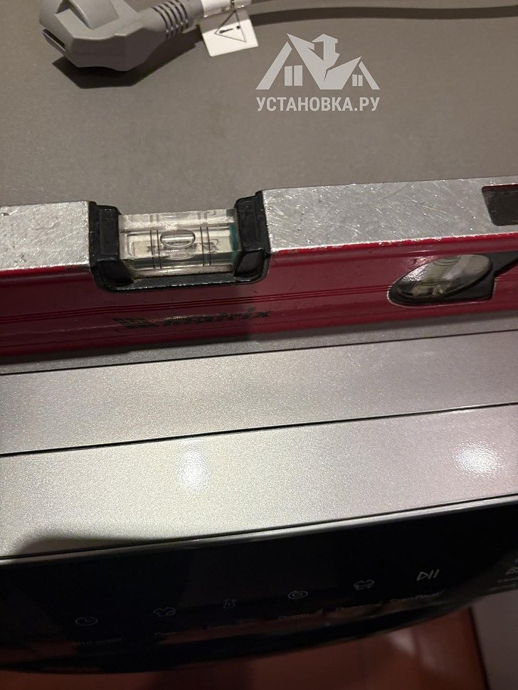 - Снятие транспортировочных креплений у стиральной машины, выравнивание по уровню.
