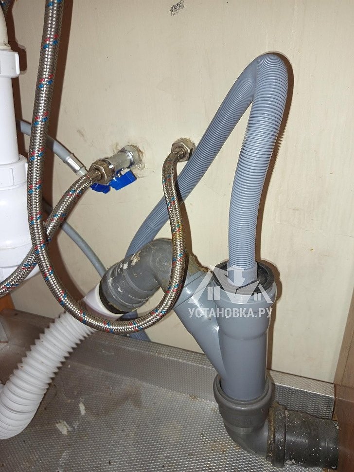 - Подключение посудомоечной машины соло к существующим коммуникациям.
