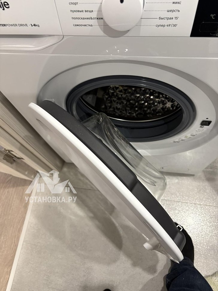 - Разметка и установка ручки и навес фасада на корпус стиральной машины