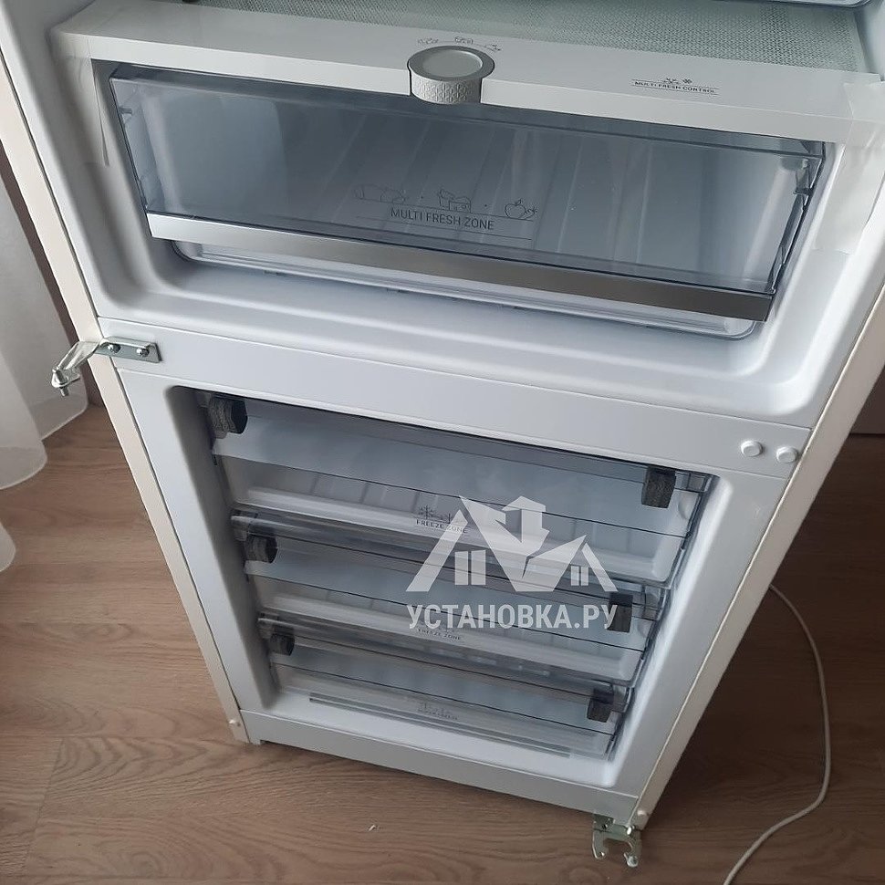 - Навес фасадов на холодильник с их последующей регулировкой.
