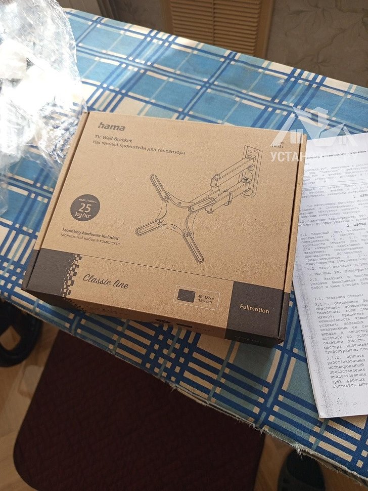Установка телевизора диагональю до 52"шт. 3100.00 p.В данную работу входит:- Выезд мастера в пределах МКАД.