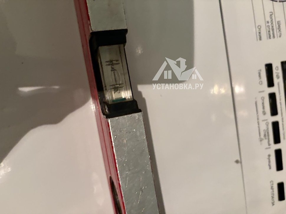 - Снятие транспортировочных креплений у стиральной машины, выравнивание по уровню.