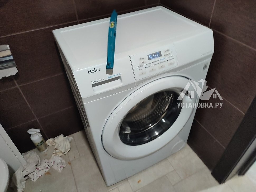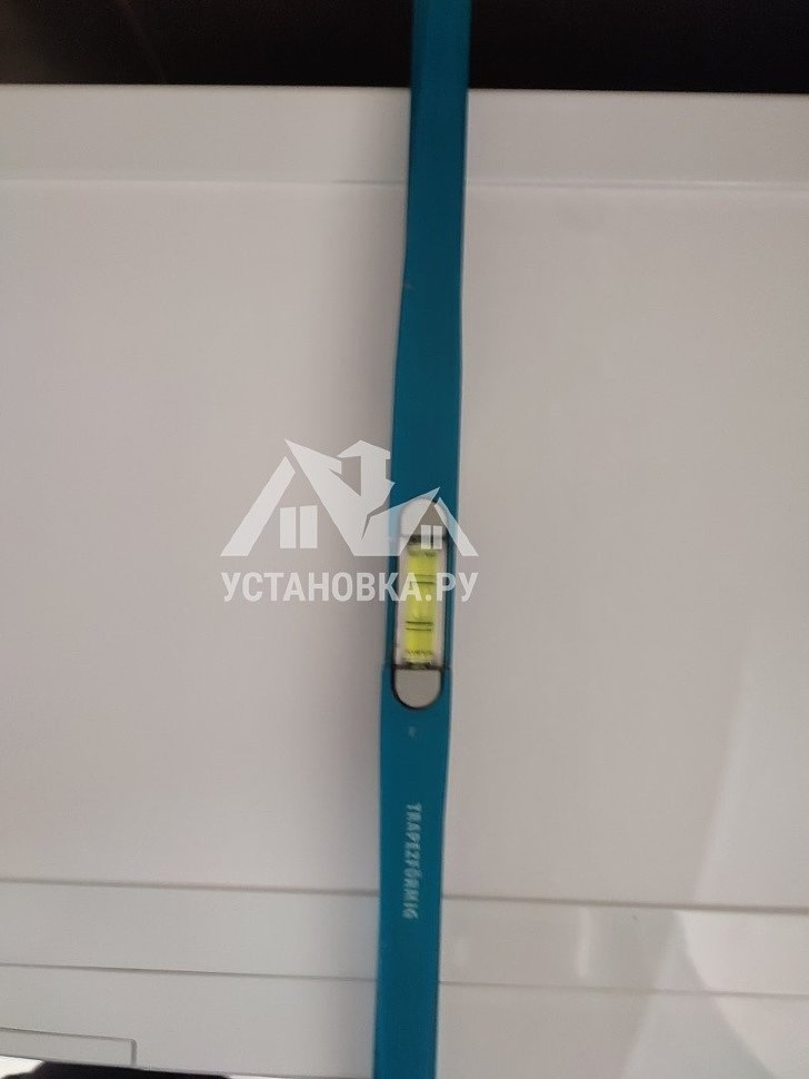 - Снятие транспортировочных креплений у стиральной машины, выравнивание по уровню.