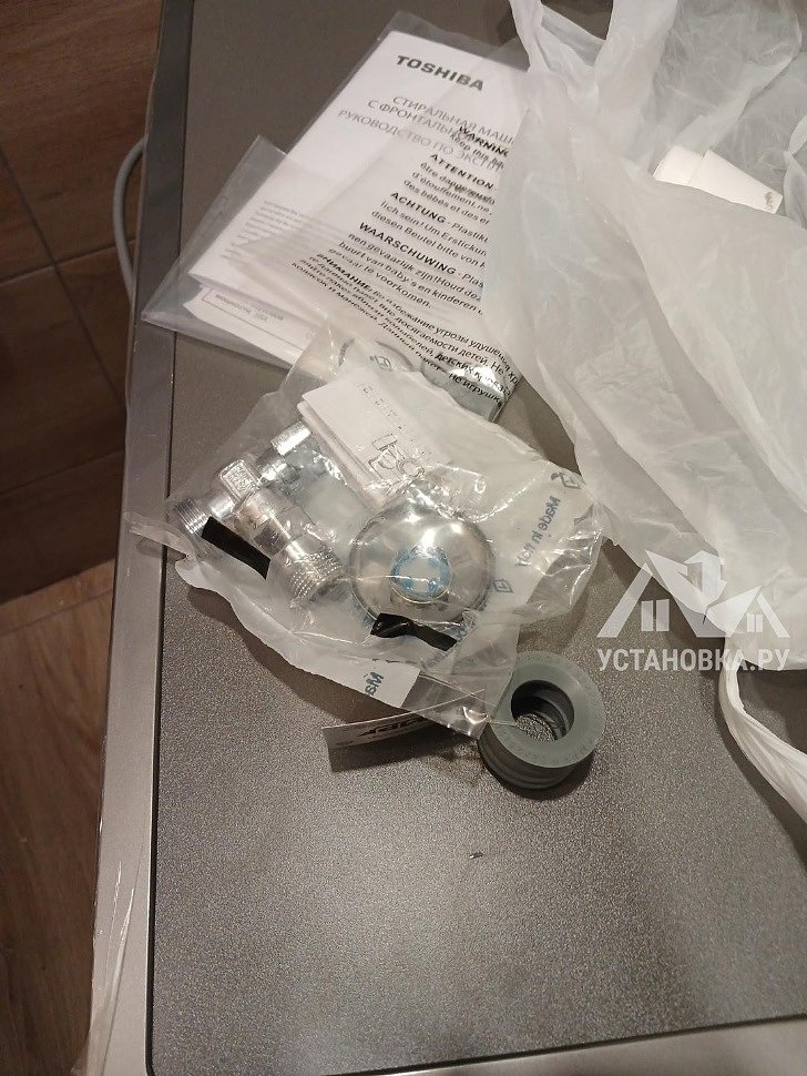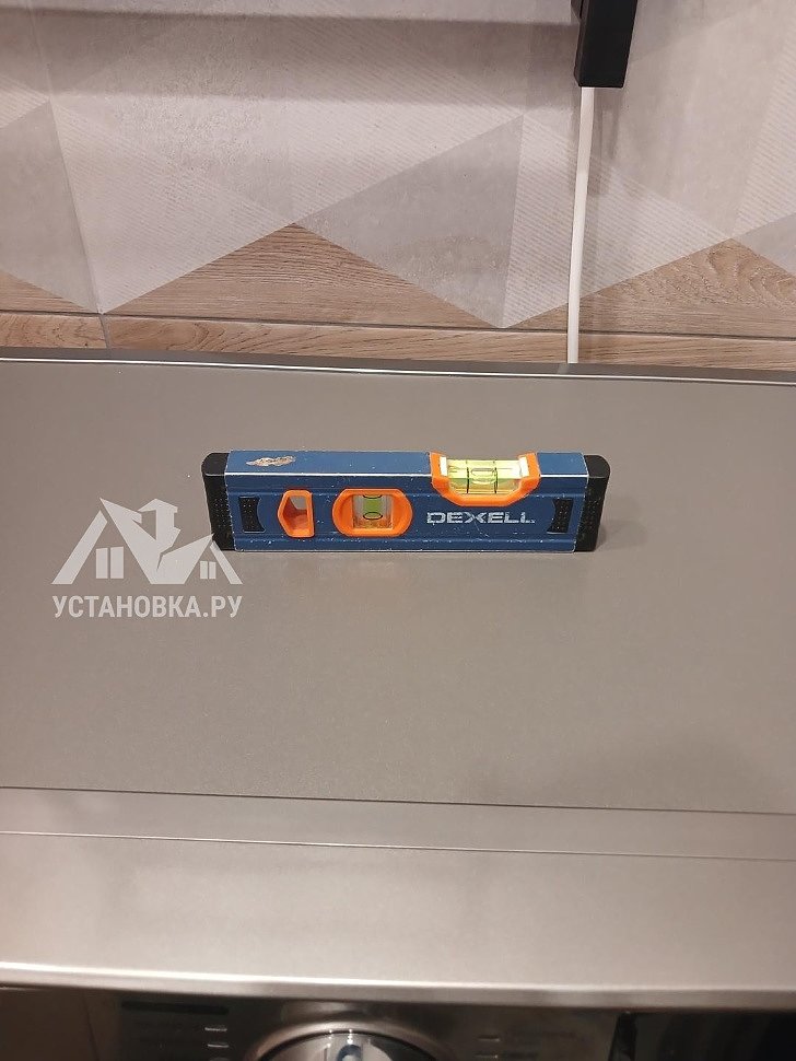 - Снятие транспортировочных креплений у стиральной машины, выравнивание по уровню.