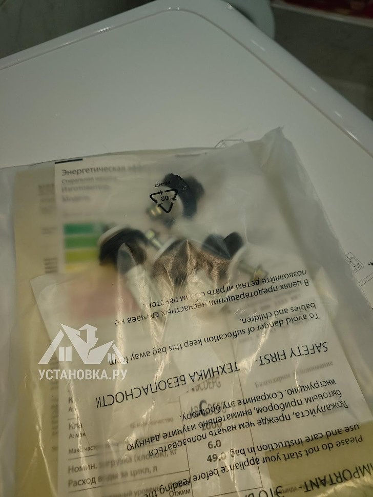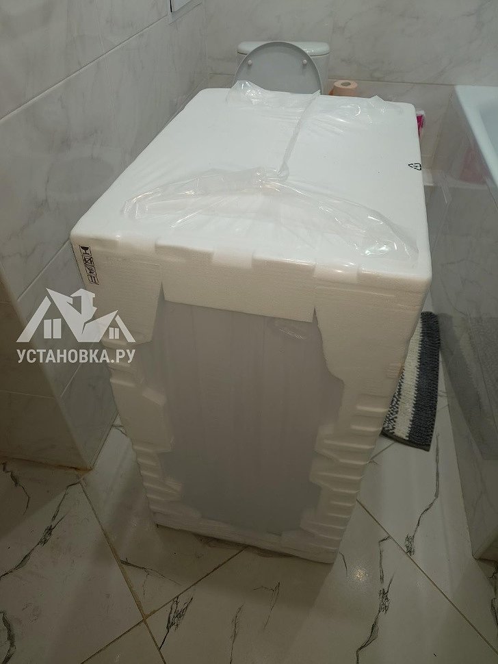 - Снятие транспортировочных креплений у стиральной машины, выравнивание по уровню.