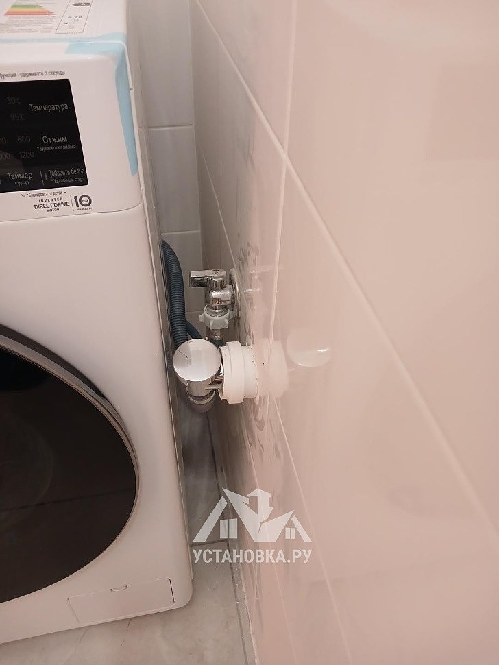 - Организация коммуникаций (установка крана, установка сифона или тройника для слива воды стиральной машины, организация электросети).