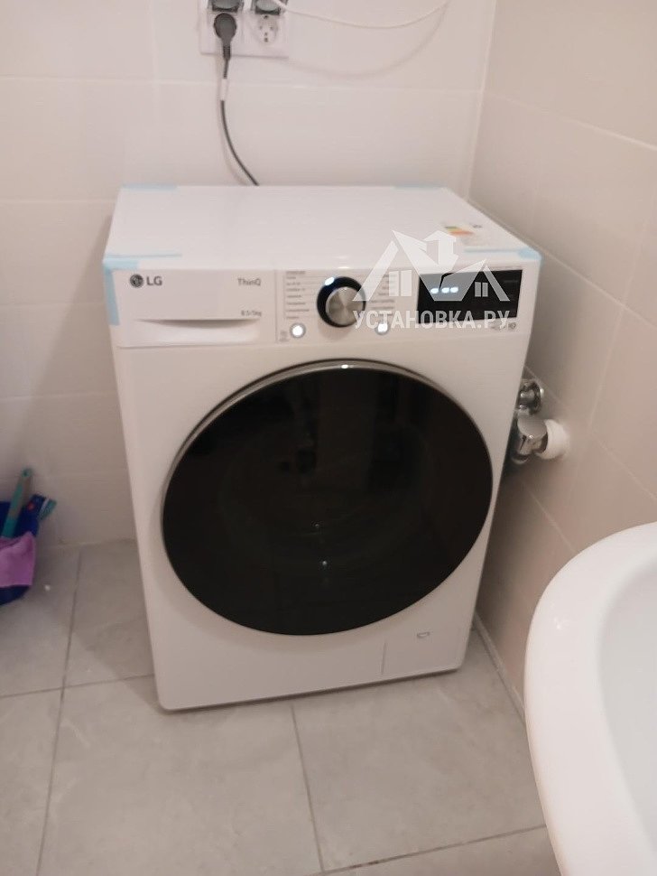 - Подключение шлангов стиральной машины к подготовленным коммуникациям и включение в существующую электрическую розетку.