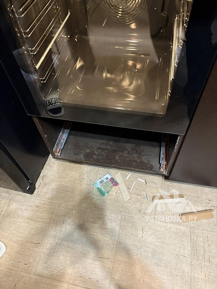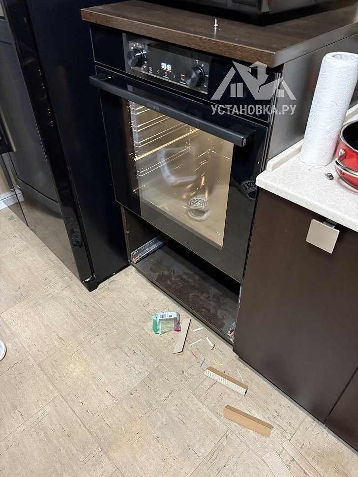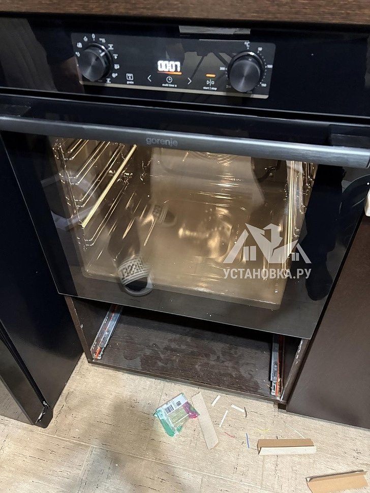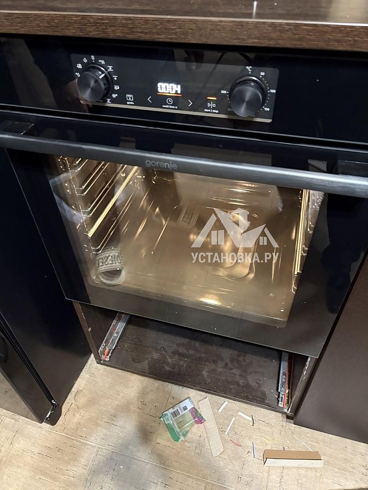 - Установка духового шкафа в подготовленную мебельную нишу.